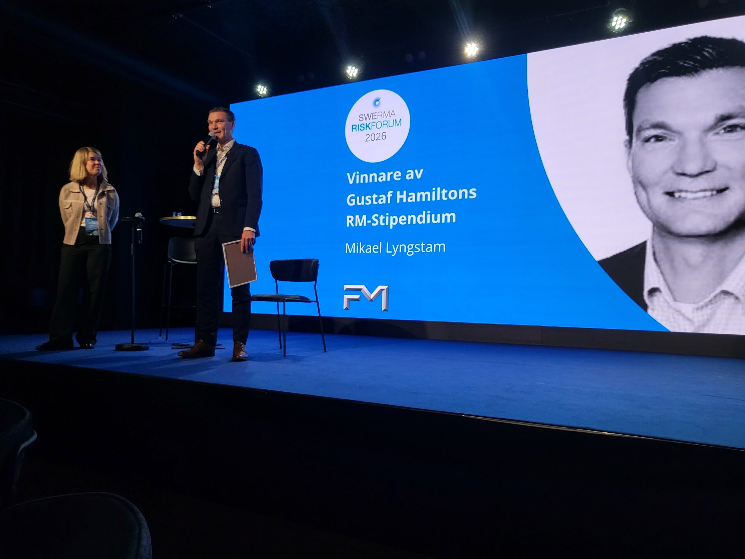 Under Risk Forum presenterades vinnaren av Gustaf Hamiltons RM-stipendiet samt vinnarna av Studentuppsatser 2026. SWERMA vill återigen gratulera årets vinnare!